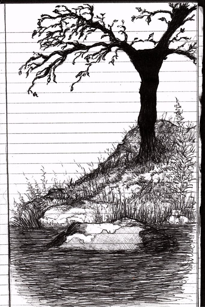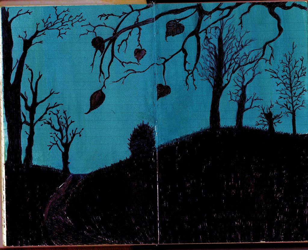 And as much as I loved leaves, I loved trees. But, they were impossible to press between the pages of my journal. So, I drew them. Sketched them down with cheap pens on lined pages. And I smile now, as I thumb through page after page. Reading words of encouragement to myself, remembering every moment I sat and sketched out my current enviroment. I remember who I was then.